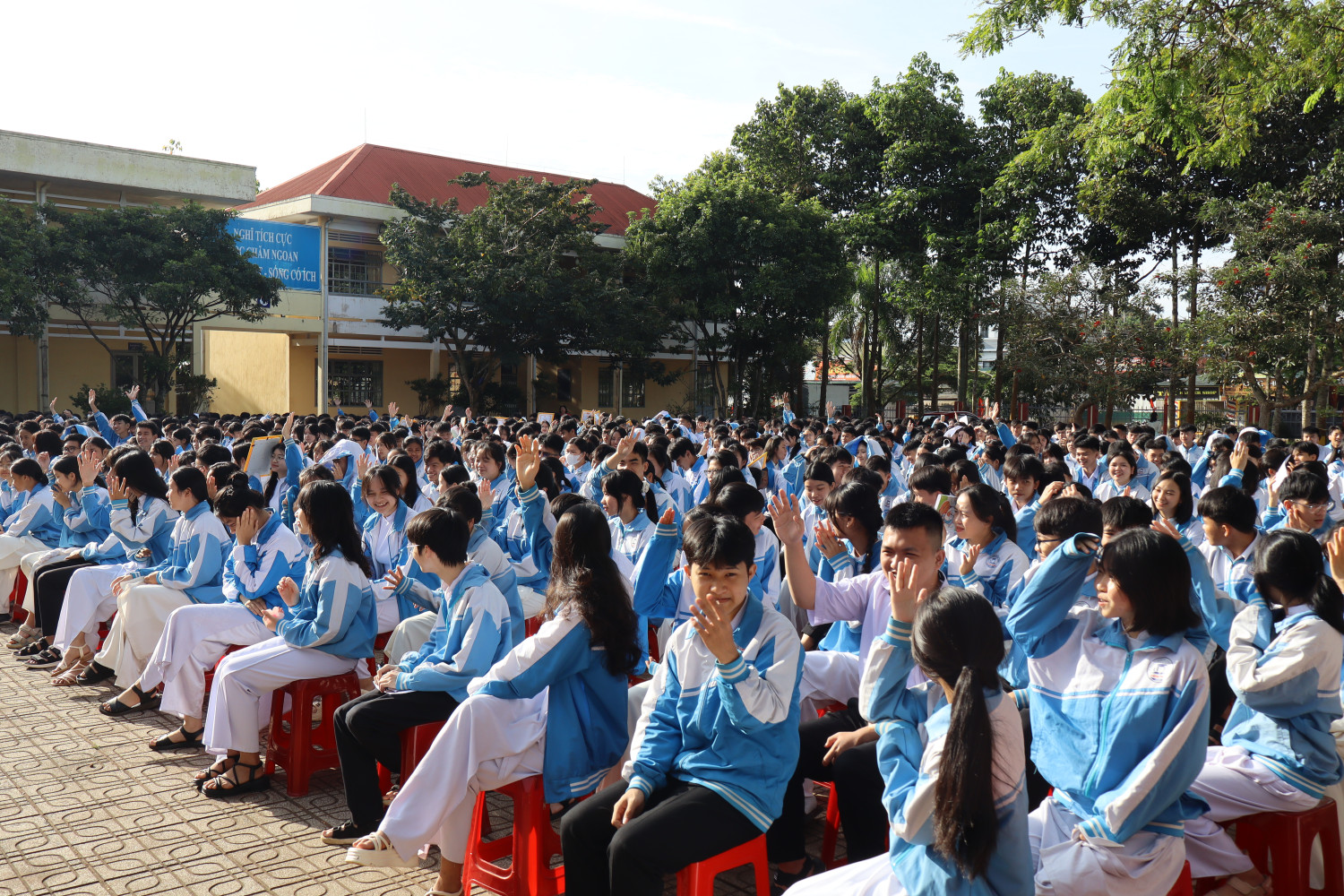 Mở đầu buổi nói chuyện, cô đặt ra những câu hỏi giao lưu thú vị như: “Bao nhiêu trong số các em sử dụng mạng xã hội hằng ngày?” “Một ngày, các em dành bao nhiêu thời gian để lướt mạng?”... Những câu hỏi tưởng chừng đơn giản nhưng đã giúp học sinh nhận ra rằng mạng xã hội đang chiếm một phần không nhỏ trong đời sống học đường hiện nay. Đây là một hoạt động thiết thực, gần gũi và ý nghĩa.